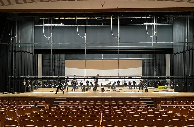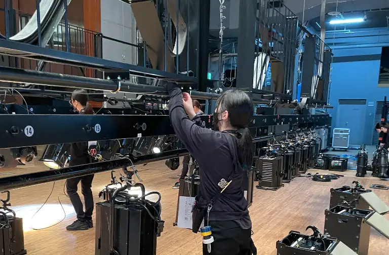 照明器材や音響機材を設営。安全スムーズに作業します。